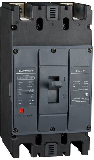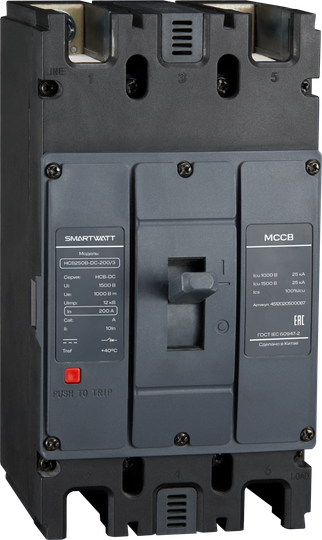 Автоматические выключатели в литом корпусе SMARTWATT PDE HCB-DC предназначены для защиты электрических цепей постоянного тока от токов перегрузки и короткого замыкания.