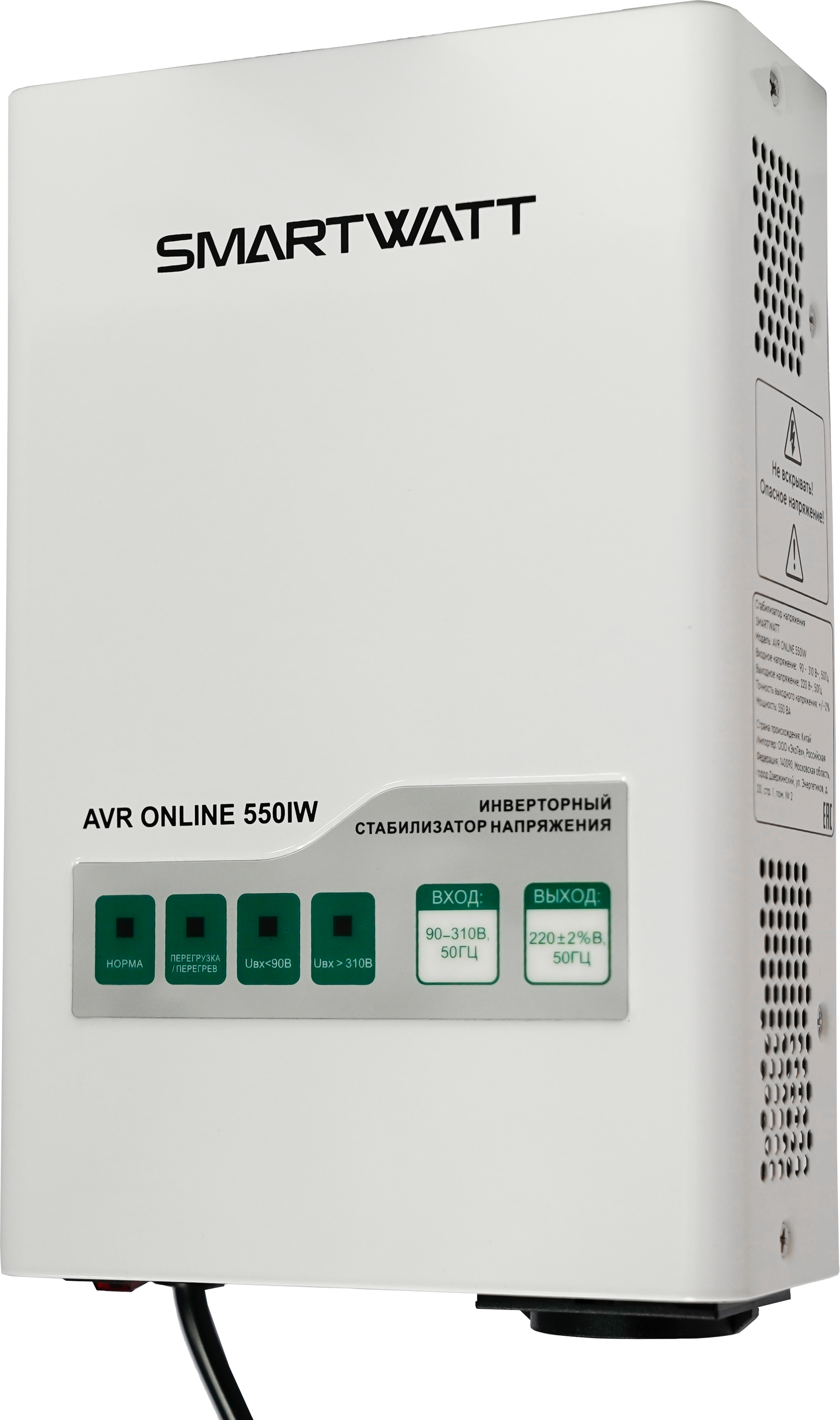 Стабилизатор напряжения SMARTWATT AVR ONLINE 550IW создан на основе инверторной технологии.