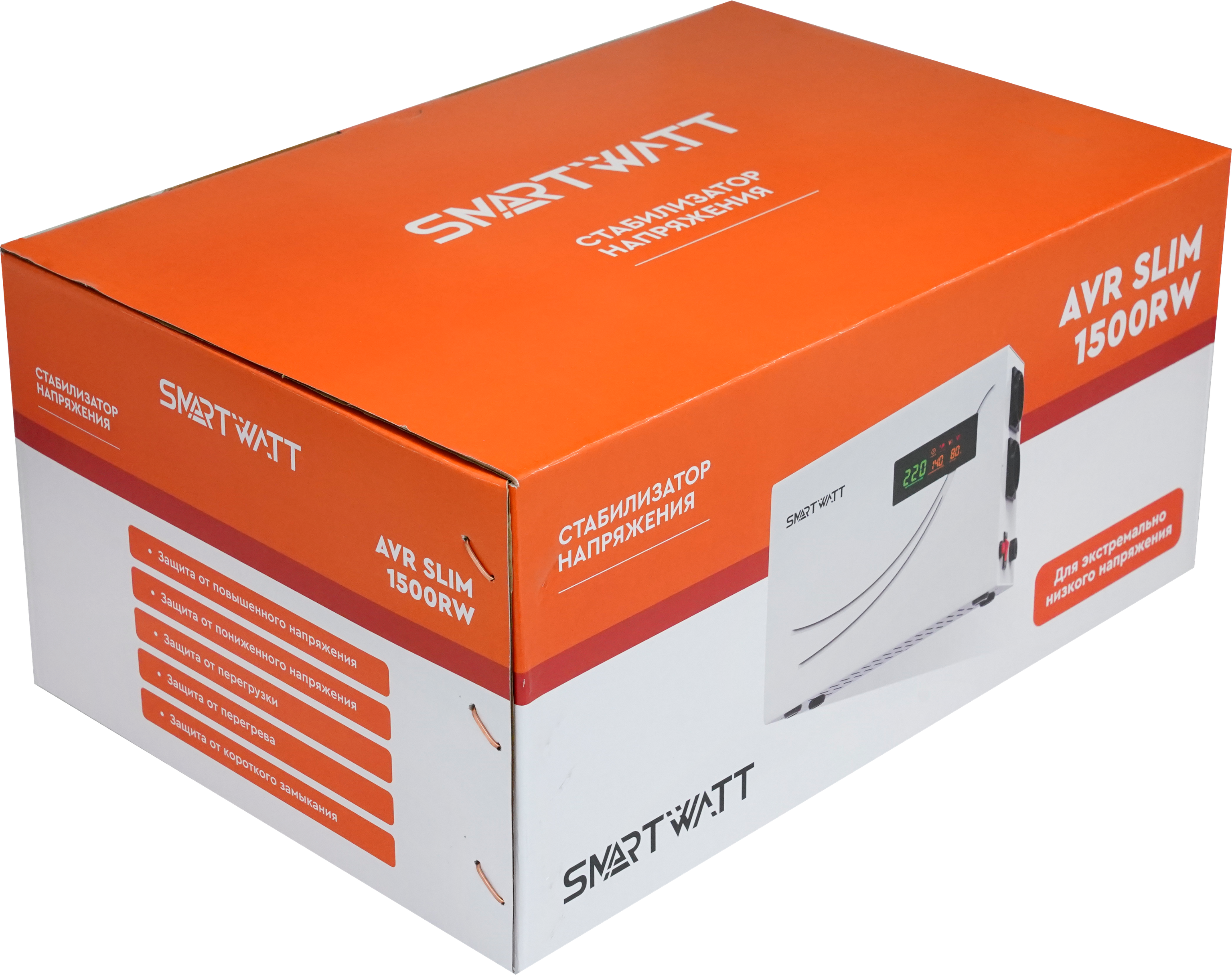 Стабилизаторы SMARTWATT AVR SLIM оптимизированы для низкого напряжения и обеспечивают стабильные 220 В даже когда в сети — 100 В. Устройства универсальны: могут использоваться в офисе, загородном доме или на предприятии. Работают в широком диапазоне, компенсируя значительные колебания в сети. Стабильность электроснабжения гарантирует сохранность подключенных приборов, особенно если те чувствительны к перепадам. Стабилизаторы напряжения SMARTWATT AVR SLIM минимизируют возможности поломок и сбоев электрооборудования. Среди прочих особенностей — компактный плоский корпус, релейное переключение при помощи микропроцессора, функция ZeroCross, задержка на включения, расширенный дисплей индикации, возможность напольного и настенного размещения.