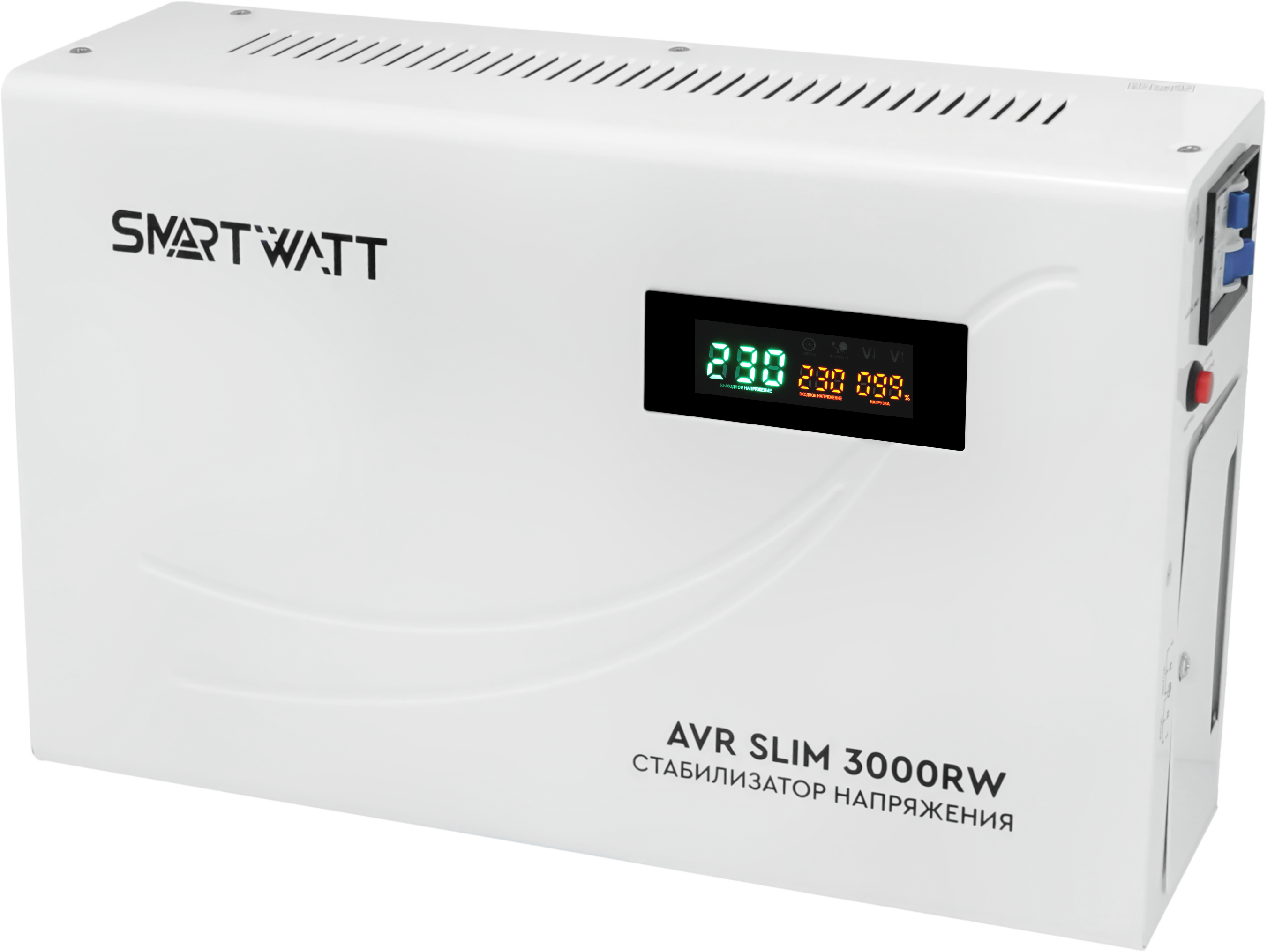 Стабилизаторы SMARTWATT AVR SLIM оптимизированы для низкого напряжения и обеспечивают стабильные 220 В даже когда в сети — 100 В. Устройства универсальны: могут использоваться в офисе, загородном доме или на предприятии. Работают в широком диапазоне, компенсируя значительные колебания в сети. Стабильность электроснабжения гарантирует сохранность подключенных приборов, особенно если те чувствительны к перепадам. Стабилизаторы напряжения SMARTWATT AVR SLIM минимизируют возможности поломок и сбоев электрооборудования. Среди прочих особенностей — компактный плоский корпус, релейное переключение при помощи микропроцессора, функция ZeroCross, задержка на включения, расширенный дисплей индикации, возможность напольного и настенного размещения.