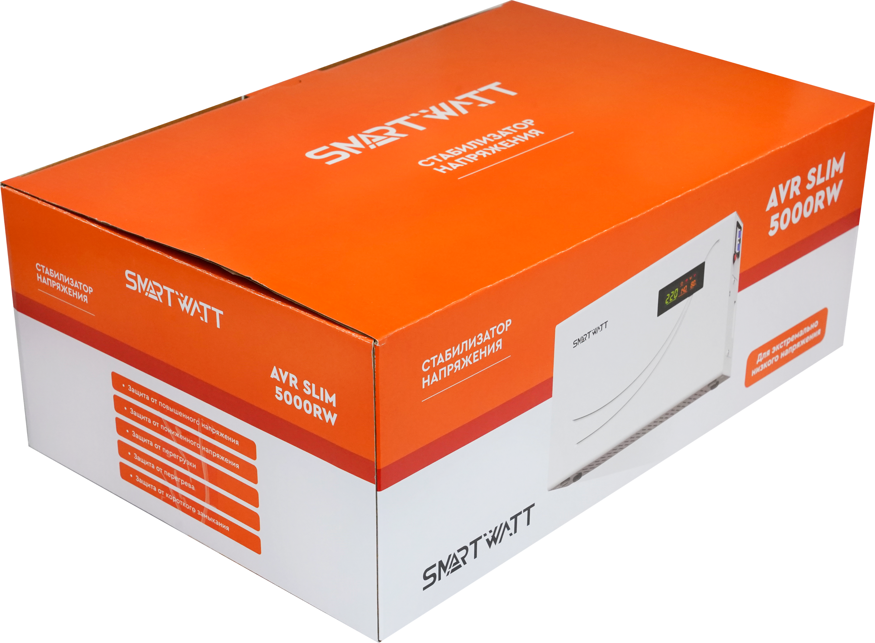 Стабилизаторы SMARTWATT AVR SLIM оптимизированы для низкого напряжения и обеспечивают стабильные 220 В даже когда в сети — 100 В. Устройства универсальны: могут использоваться в офисе, загородном доме или на предприятии. Работают в широком диапазоне, компенсируя значительные колебания в сети. Стабильность электроснабжения гарантирует сохранность подключенных приборов, особенно если те чувствительны к перепадам. Стабилизаторы напряжения SMARTWATT AVR SLIM минимизируют возможности поломок и сбоев электрооборудования. Среди прочих особенностей — компактный плоский корпус, релейное переключение при помощи микропроцессора, функция ZeroCross, задержка на включения, расширенный дисплей индикации, возможность напольного и настенного размещения.
