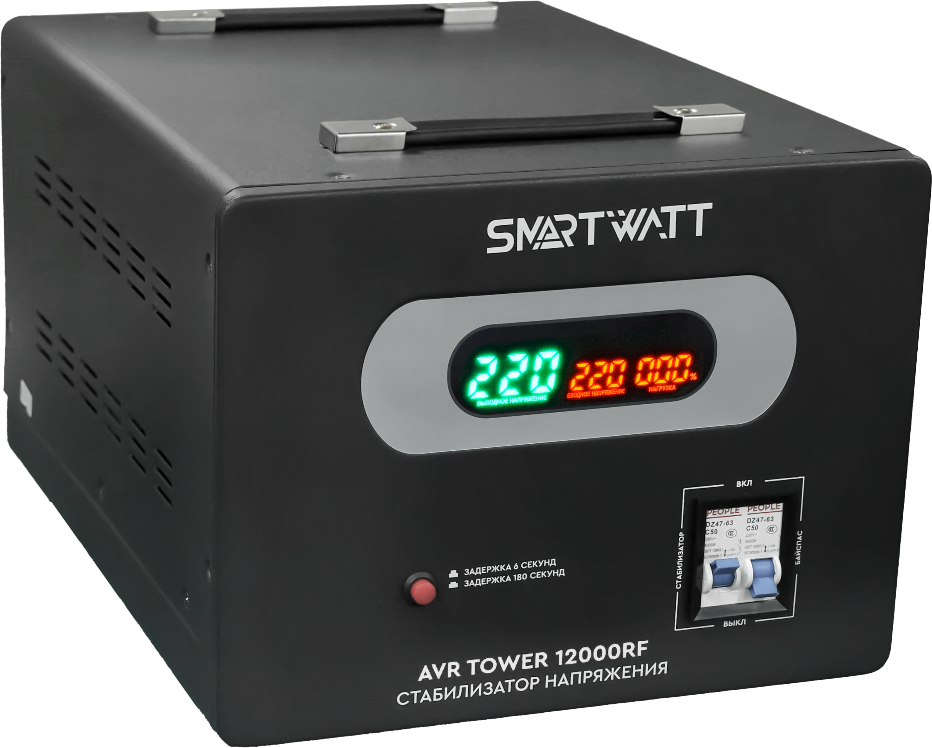 Стабилизаторы SMARTWATT AVR TOWER обладают базовым функционалом и разработаны специально для бытовой техники. Устройства работают в диапазоне от 140 до 260 В, что позволяет стабилизировать как повышенное, так и пониженное напряжение. Стабилизаторы SMARTWATT AVR TOWER оснащены информативным дисплеем, встроенным байпасом (в моделях от 3кВА) и функцией задержки на включения. Среди прочих особенностей — релейное переключение при помощи микропроцессора и функция ZeroCross.