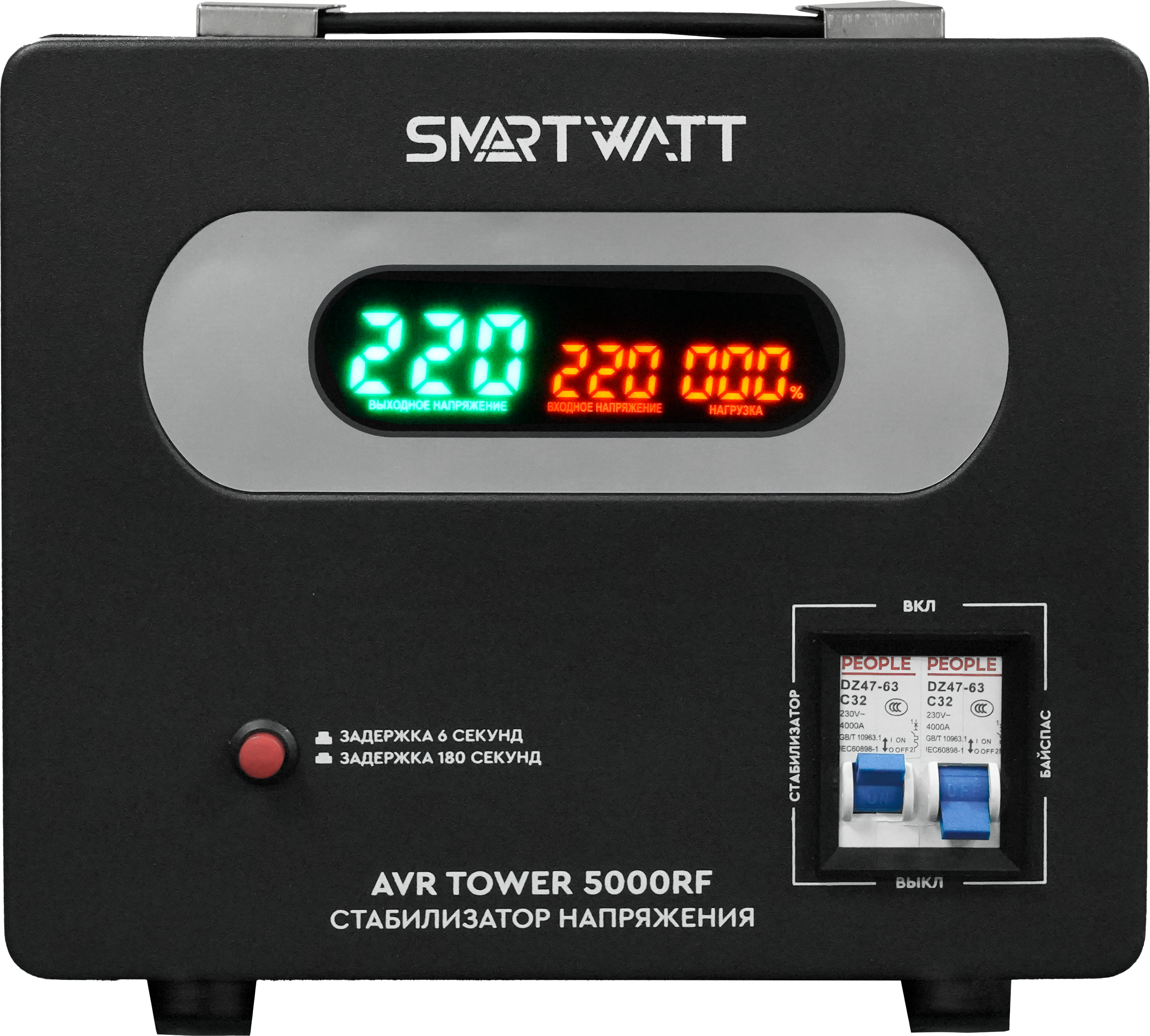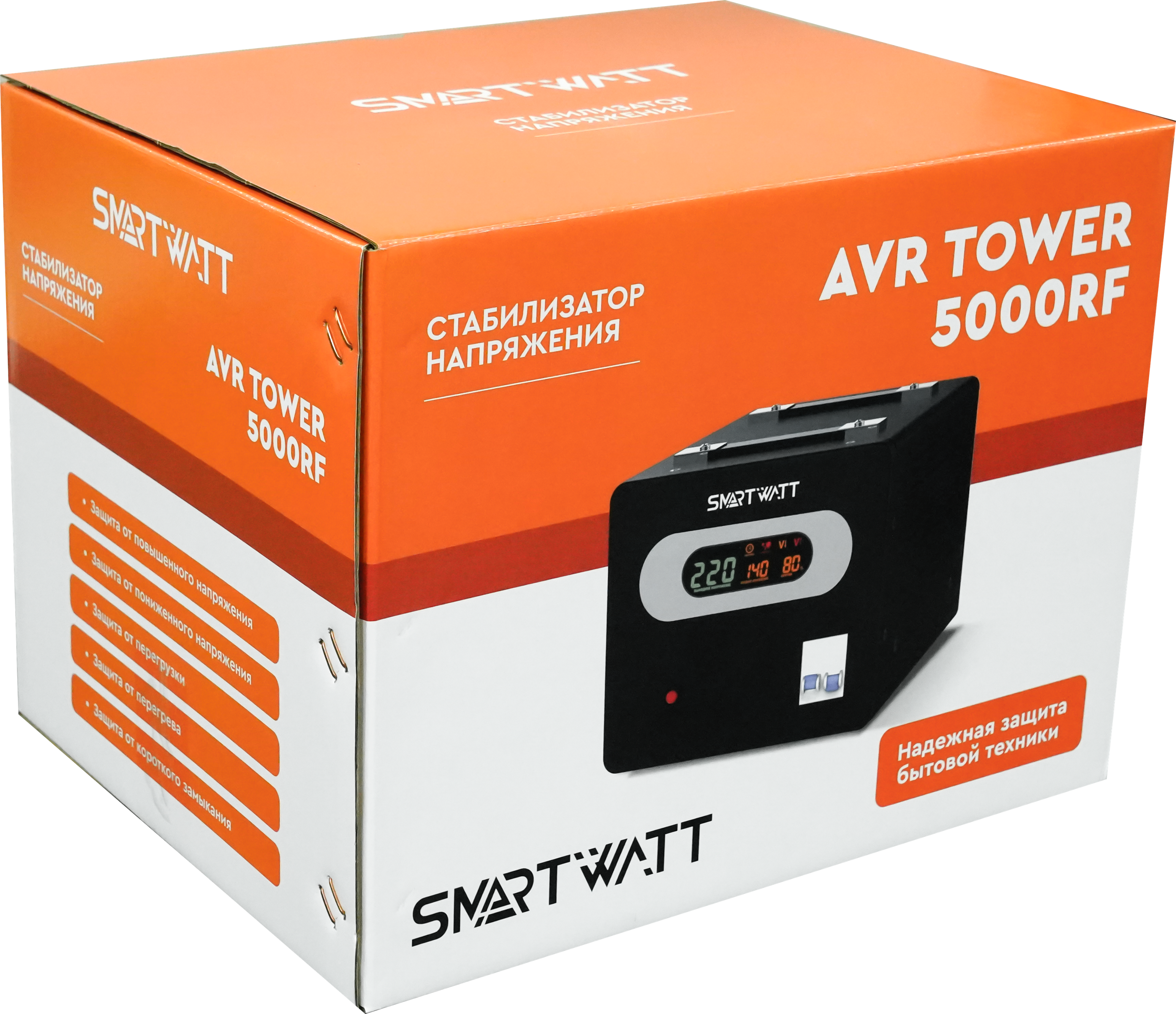 Стабилизаторы SMARTWATT AVR TOWER обладают базовым функционалом и разработаны специально для бытовой техники. Устройства работают в диапазоне от 140 до 260 В, что позволяет стабилизировать как повышенное, так и пониженное напряжение. Стабилизаторы SMARTWATT AVR TOWER оснащены информативным дисплеем, встроенным байпасом (в моделях от 3кВА) и функцией задержки на включения. Среди прочих особенностей — релейное переключение при помощи микропроцессора и функция ZeroCross.