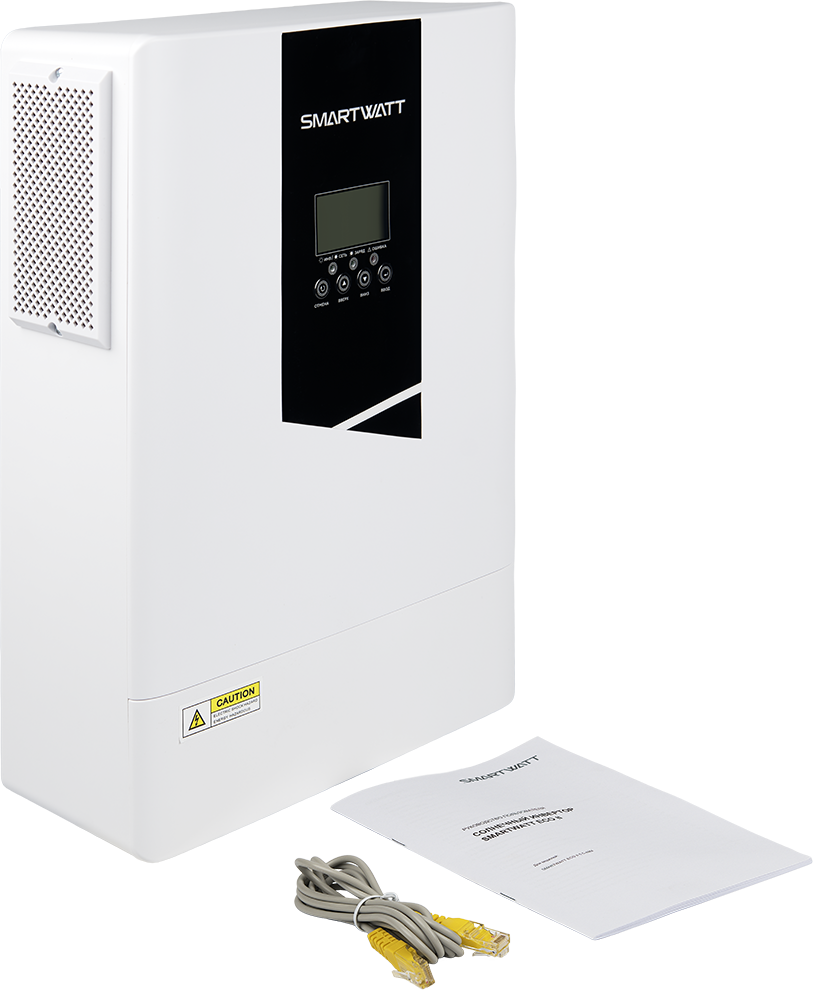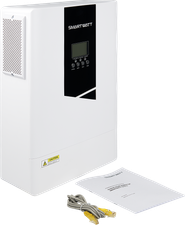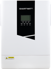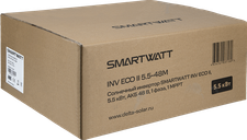 SMARTWATT INV ECO II 5.5-48M - однофазный инвертор резервного типа серии ECO II мощностью 5.5 кВт с функцией источника бесперебойного питания (ИБП) и возможностью заряда АКБ от солнца. Применяется для небольшой солнечной электростанции с возможностью подключения солнечных панелей до 5500 Ватт и аккумуляторов напряжением 48 Вольт. Возможна эксплуатация без аккумуляторной батареи, но только при выставленном режиме SOL. Сочетает в себе функционал инвертора и солнечного зарядного устройства с контроллером MPPT. Имеет пластиковый корпус, а также защиту от перегрузки, короткого замыкания, перегрева. Позволяет настраивать приоритет заряда от солнца или сети и изменять другие настройки с помощью встроенного LCD дисплея. Инвертор имеет высокую надежность, прост в использовании и установке. Вход и выход инвертора реализован в виде универсальной клеммной колодки.