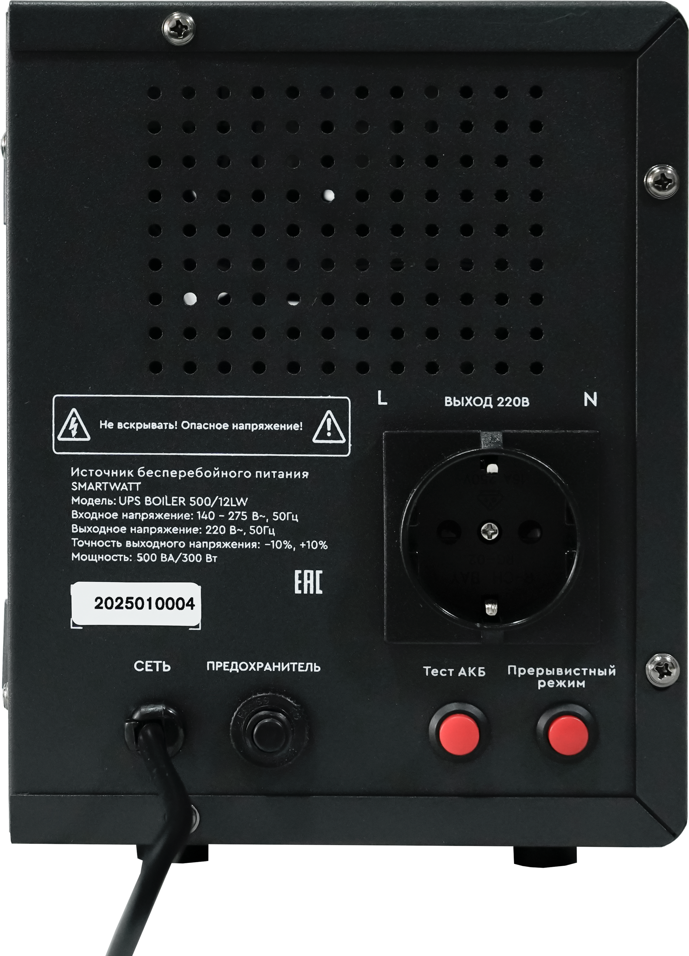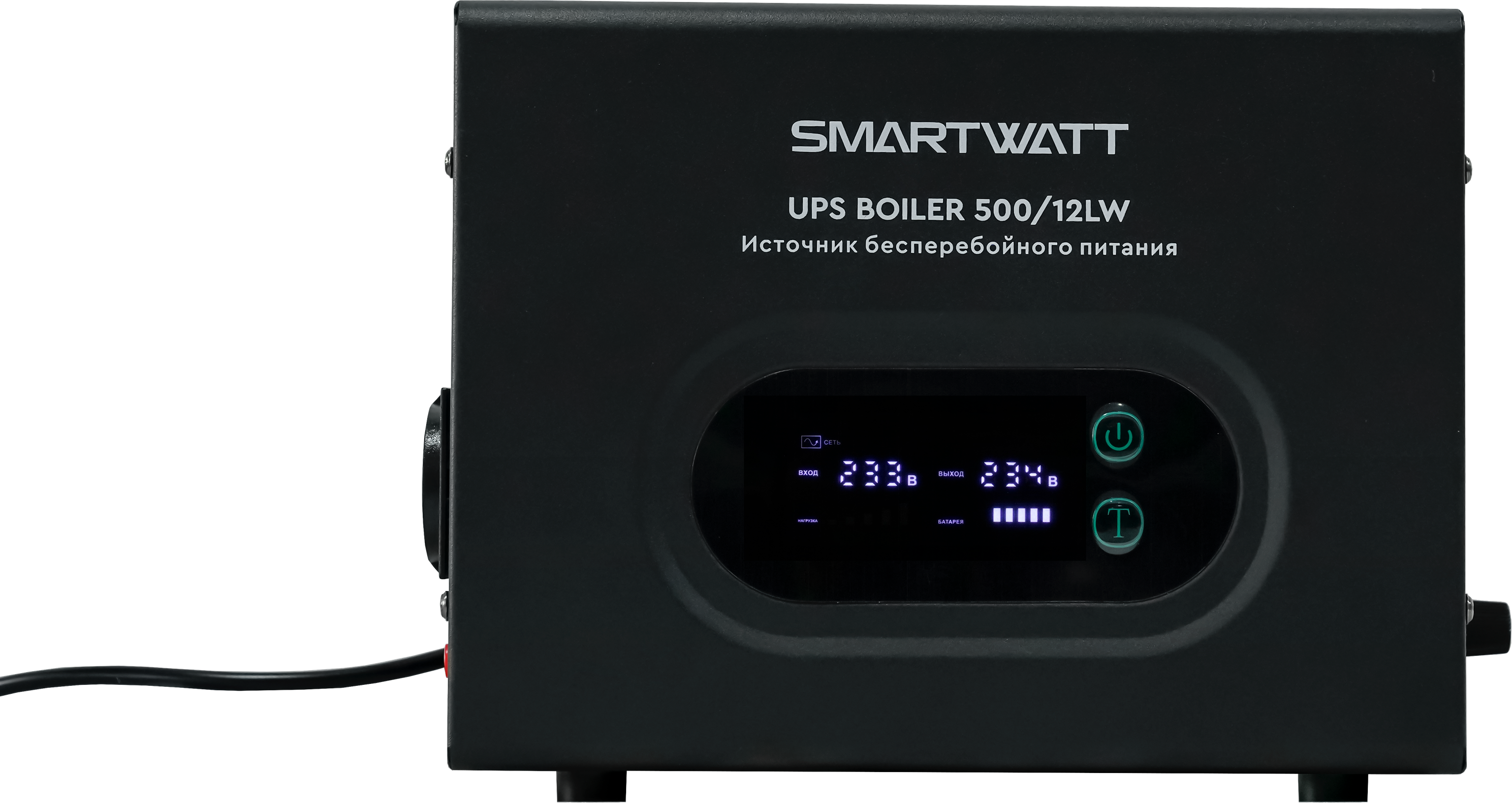 Линейно-интерактивные ИБП SMARTWATT BOILER для отопительного оборудования. Устройства отображают точное время работы системы отопления от аккумуляторов, а функция «Прерывистый режим» в 3 раза увеличивает длительность автономии. Индикация фазировки и сквозная нейтраль обеспечивают совместимость с фазозависимыми котлами. Источники бесперебойного питания SMARTWATT BOILER поддерживают увеличенное время заряда и быстро переключаются на резервное питание.