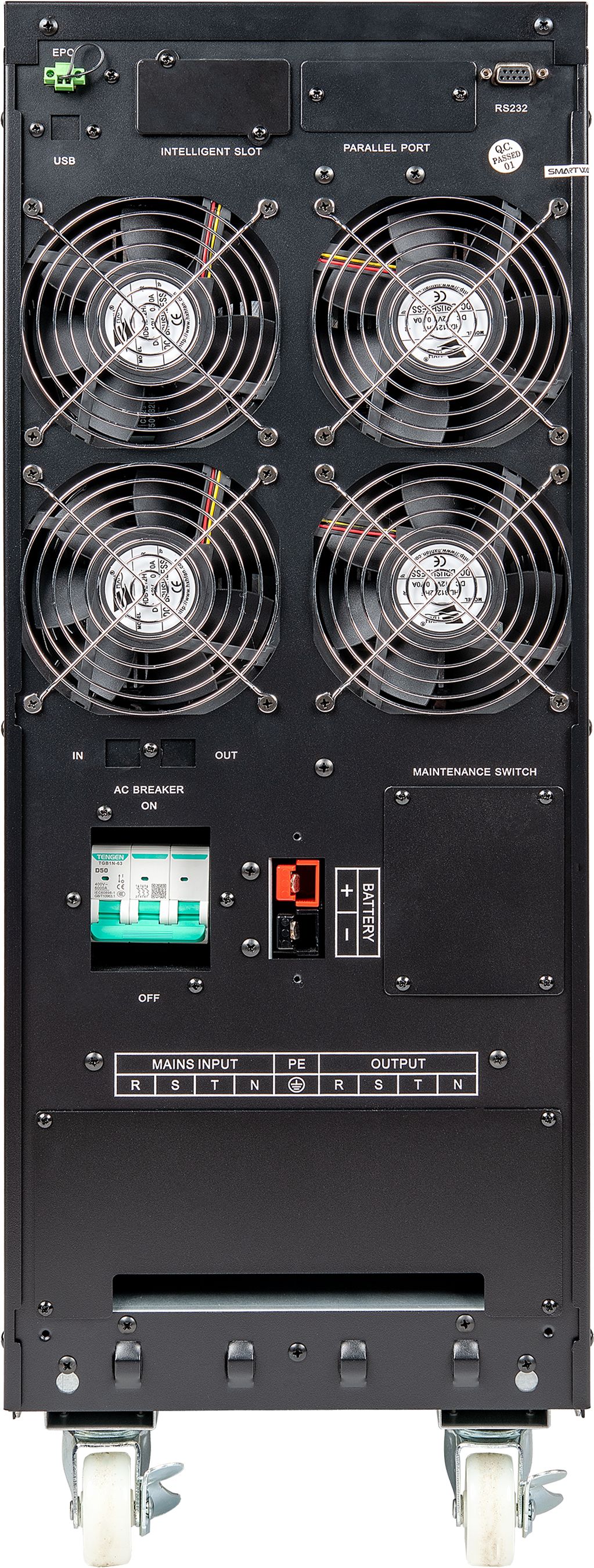 Трехфазные онлайн-ИБП SMARTWATT POWERSHELL мощностью от 10 до 40 кВА для серверного, промышленного и сетевого оборудования. Устройства поддерживают подключение внешних АКБ, что увеличивает время резервирования. Функция удаленного мониторинга и LCD-дисплей обеспечивают простоту и удобство эксплуатации. Источники бесперебойного питания SMARTWATT POWERSHELL поддерживают функцию «холодный старт» для питания подключенного оборудования при отсутствии внешнего энергоснабжения.