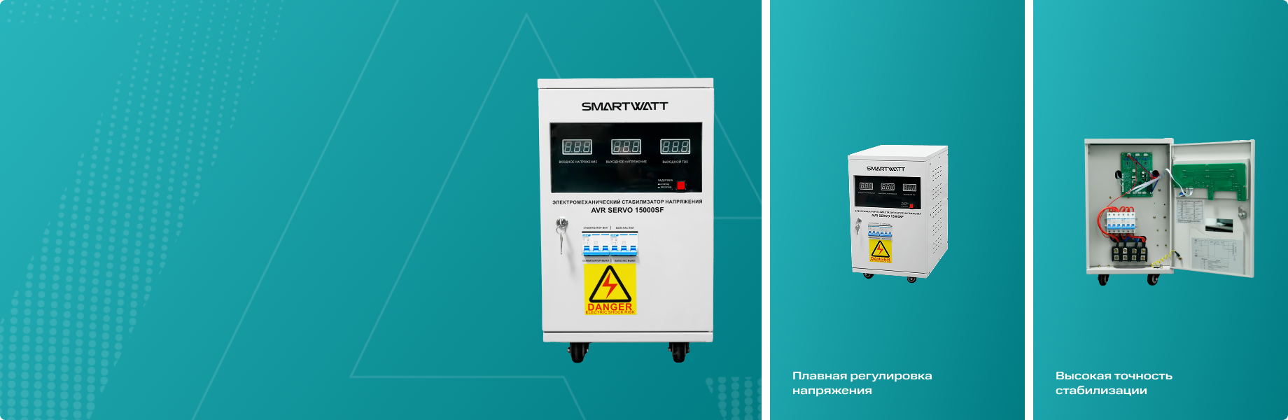 Электромеханические стабилизаторы напряжения SMARTWATT AVR SERVO SW с плавной регулировкой обеспечивают высокую точность выходного напряжения и надежно защищают оборудование от перепадов в электросети.