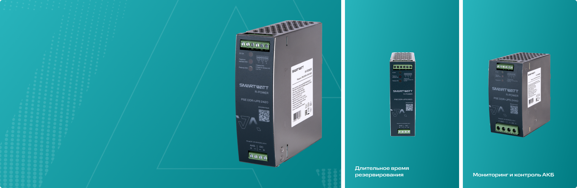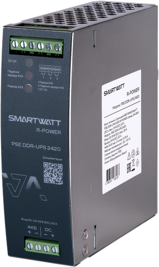 Блоки питания с функцией ИБП SMARTWATT PSE R-POWER DDR-UPS — серия, обеспечивающая резервирование критически важной нагрузки с помощью внешних аккумуляторных батарей.