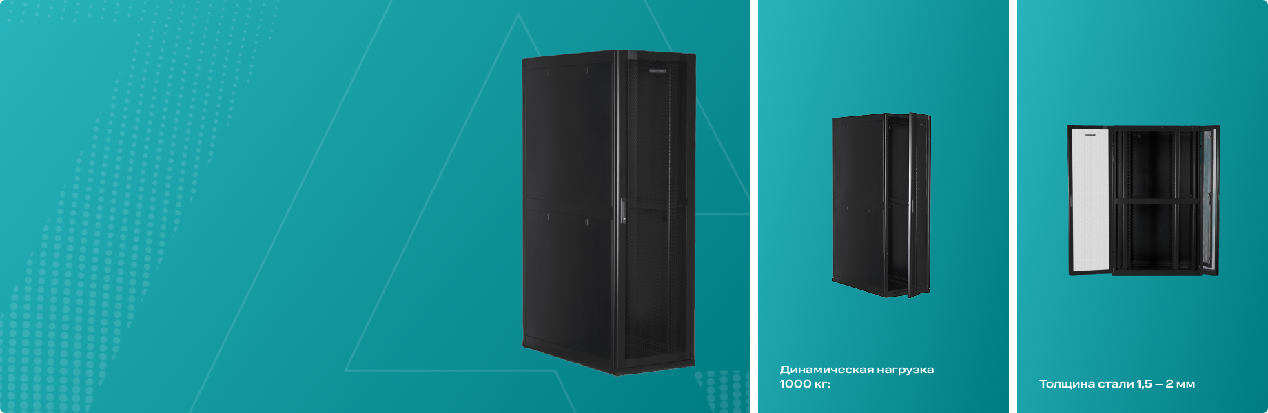 Инженерная концепция SMARTWATT S-Series делает ставку на долговечность и удобство монтажа. Жесткость каркаса, собранного из стального профиля толщиной 1.5–2 мм, гарантирует сохранение геометрии даже при значительных нагрузках. Важно, что эта прочность — мобильна. Шкаф выдерживает динамическую нагрузку до 1000 кг, а значит, его можно безопасно перемещать по дата-центру для перестановки оборудования. Простота обслуживания подчеркивается в деталях, например, дверь можно снять с петель за несколько секунд, и получить беспрепятственный доступ для работ с крупногабаритной техникой. Также есть возможность сразу купить шкаф SMARTWATT S-Series с полками и PDU и получить готовую ячейку для размещения серверного оборудования, которую можно ввести в строй в день поставки.